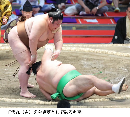 ▽照強に剣翔は剣翔が小手投げ。