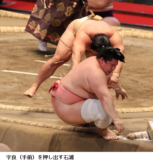 ▽新小結 明生に宇良は宇良が寄り切り。