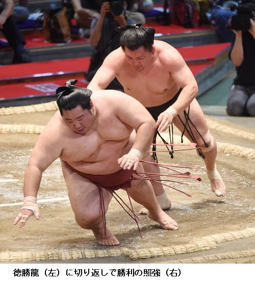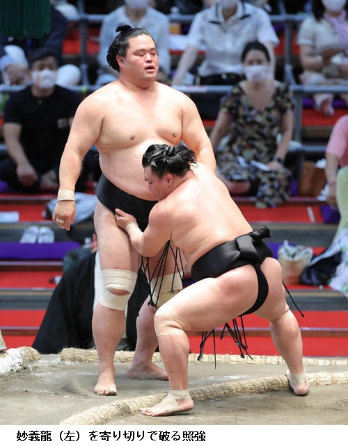▽照強に妙義龍は、照強が寄り切り。