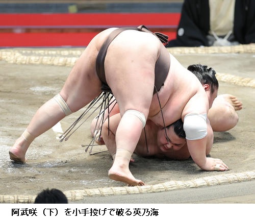 ▽英乃海に阿武咲は、英乃海が小手投げ。