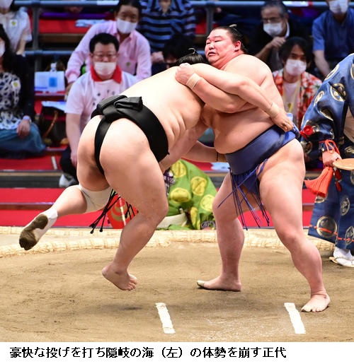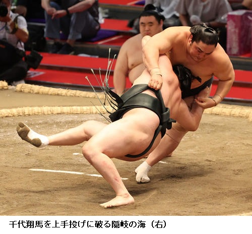 ▽千代翔馬に隠岐の海は、隠岐の海が上手投げ。