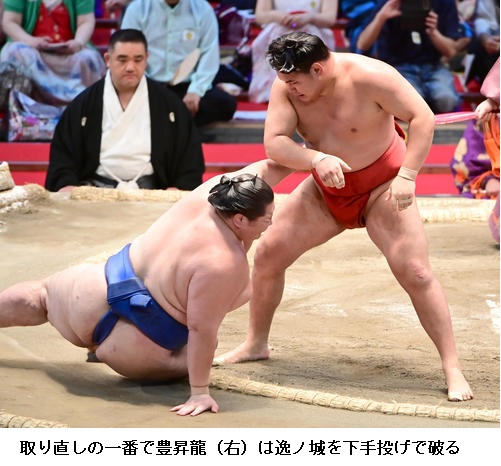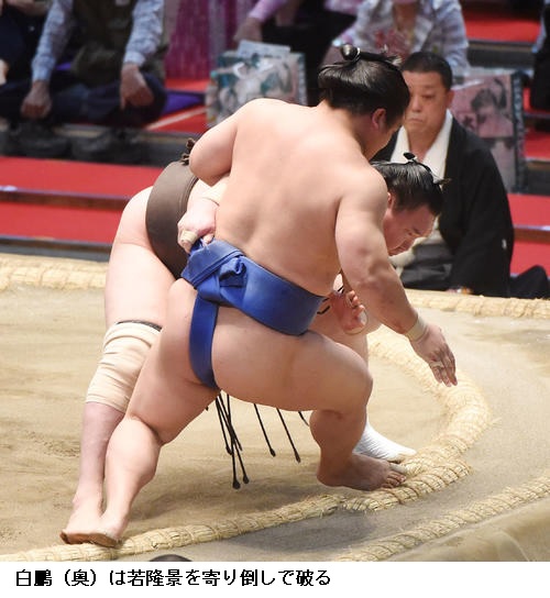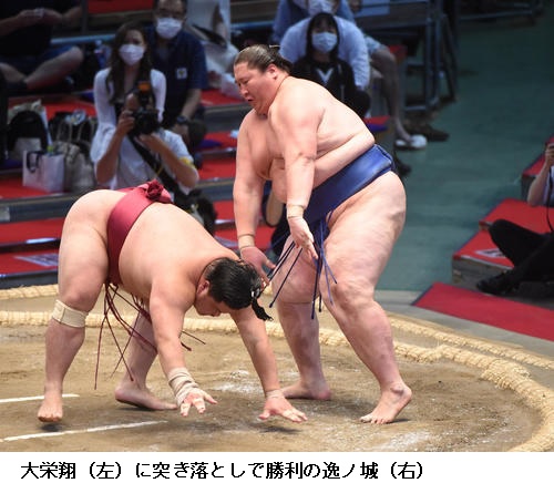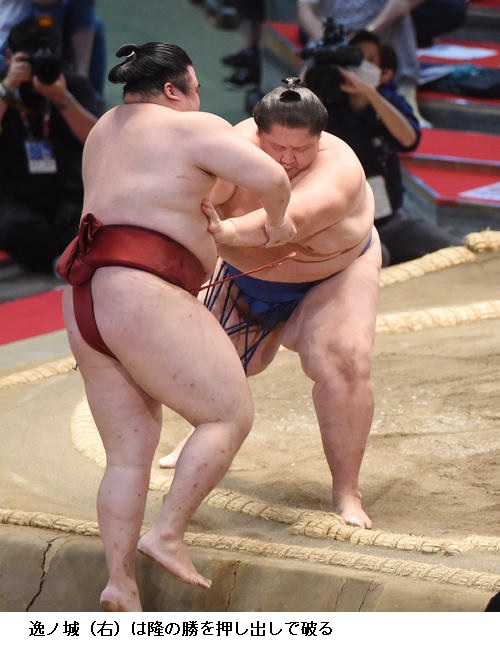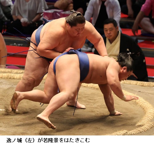 ▽逸ノ城に新小結 若隆景は、逸ノ城がはたき込み。若隆景は5敗目を喫し「もうちょっと下から圧力をかけたかった。体の状態は悪くないので、切り替えてあすから1日一番で頑張りたい」と話しました。