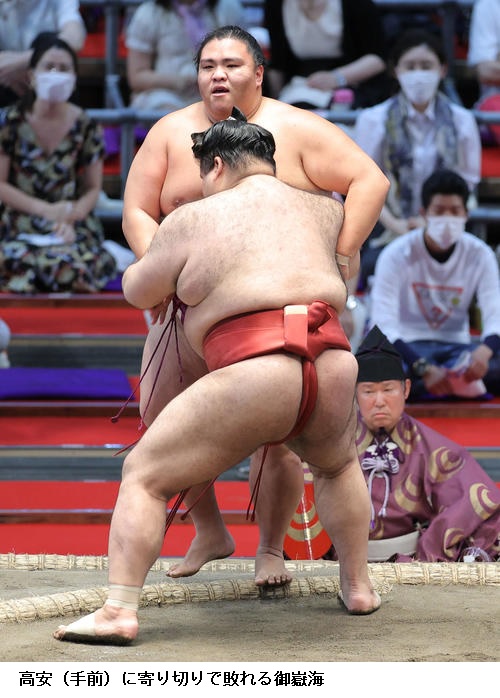 ▽御嶽海に高安の関脇どうしの一番は、高安が寄り切り。4勝目を挙げた高安は「落ち着いて相撲を取れた。腰は問題ない。相撲を取っていく中でどんどん調子が上がっているので、しっかりと準備してケガをしないように取り組んでいきたいです」と冷静に話していました。