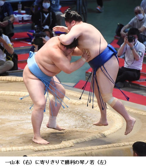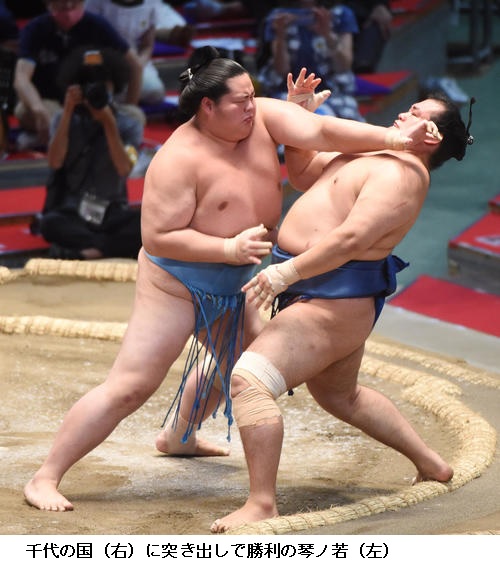 琴ノ若はただひとり1敗を守り「しっかりと踏み込むことだけを考えました。内容は覚えていませんが体が動いてよかったです。一日一番、持っているものをぶつけるだけです。自分の力を出し切って、やることをやりきって自分の相撲に集中したい」と落ち着いた様子で話しました。