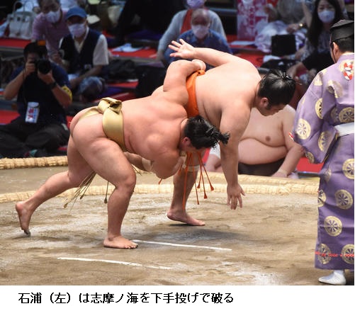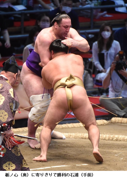 ★石浦「『よし』と思ったところで投げられて、ついていけなかった。立ち合いも悪くないが、タイミングよく決まってしまった。(今場所は)今の宿舎にサウナがついているので、サウナに入って(体調を)整えている。2日に1回。今日も入ります。水風呂も氷をがっちり入れている。他の部屋に比べて恵まれた宿舎だと思う」