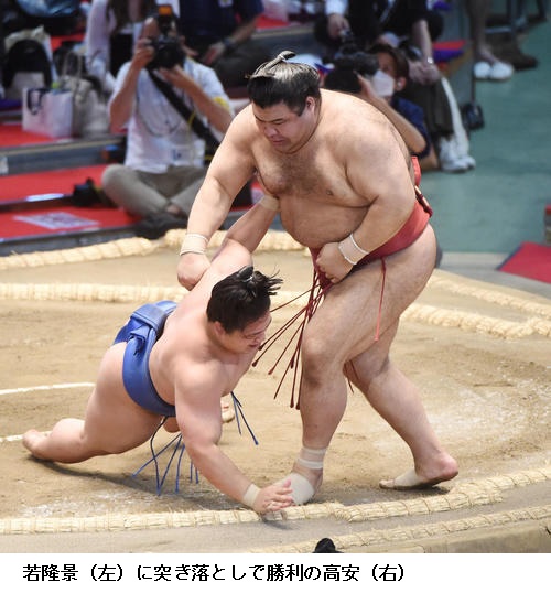 ☆若隆景 下からよく攻められた。(新三役同士の一番だったが)特に意識はないです。1日一番いい相撲を取ることを意識したい。