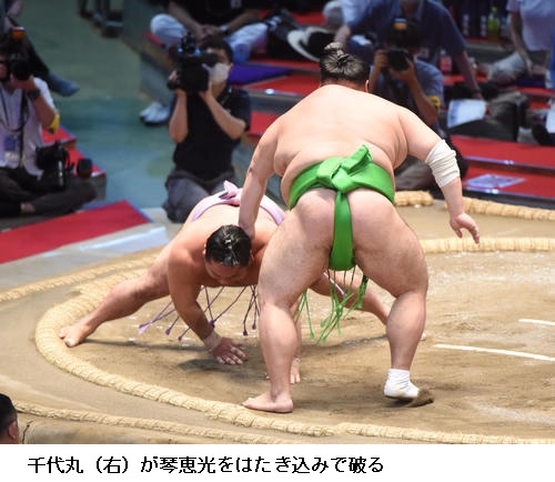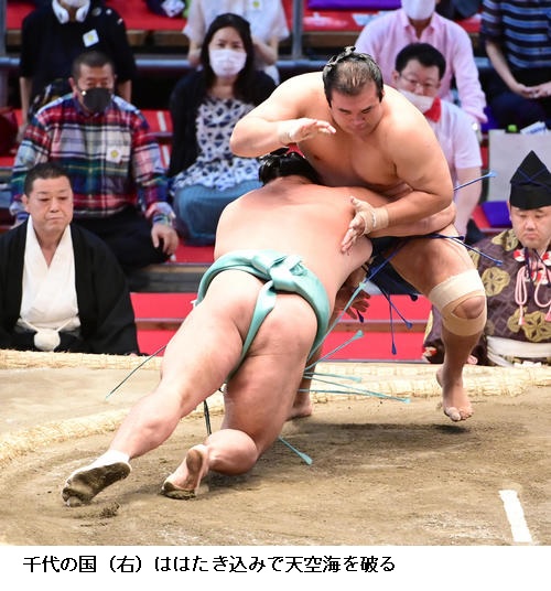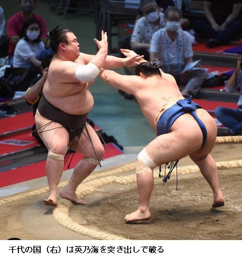 ☆千代の国 よく体が動いた。悪くはないと思う。(前日9日に第2子となる次女が誕生)昨日おかげさまで生まれました。体重は2300ぐらいと聞いている。(場所後の対面を)楽しみにしています。(この日、7月10日は自身の31歳の誕生日)みんなからおめでとうと言っていただいので、前向きにはいけた。いい年にできるように、毎日最善を尽くして頑張っていきます。