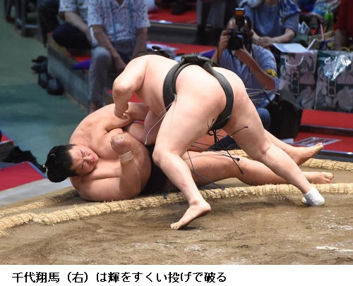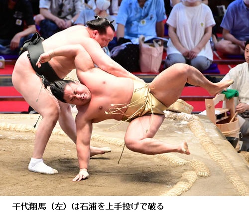 ▽千代翔馬に石浦は千代翔馬が上手投げ。