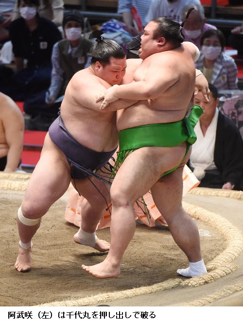 ☆阿武咲「思い通りの相撲が取れた。(千代ノ皇とは幕内では初顔だが)十両では何回もやっている相手。気負わず、自分の相撲を取りきることに集中した」