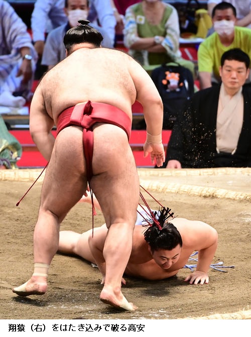 翔猿は「慎重にいったが横綱は速かった。きのうからずっと考えていたが思い切り取ることはできた。すごいどきどきして楽しかった」と振り返っていました。 (NHK WEB NEWS 2021年7月10日 19時43分)