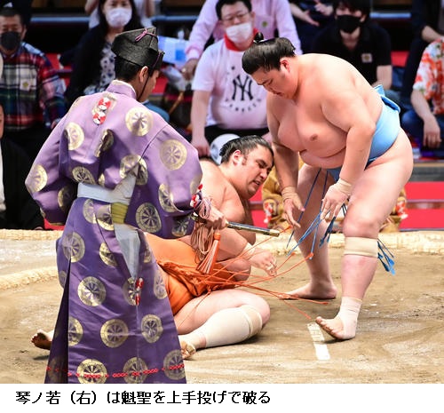 ☆琴ノ若「体勢が悪かったんで、ほめられた相撲ではなかったが、あわてず相撲をとれたのがよかった。(自己最多11勝目も)星数は意識せず、1日一番に臨めていると思う」