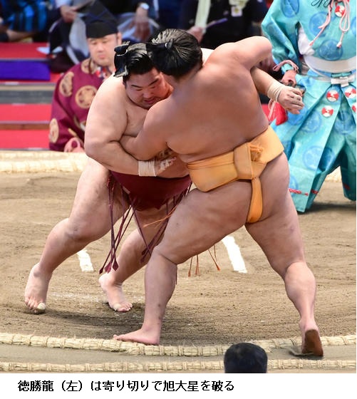 ▽十両の旭大星に徳勝龍は、徳勝龍が寄り切りで勝ちました。