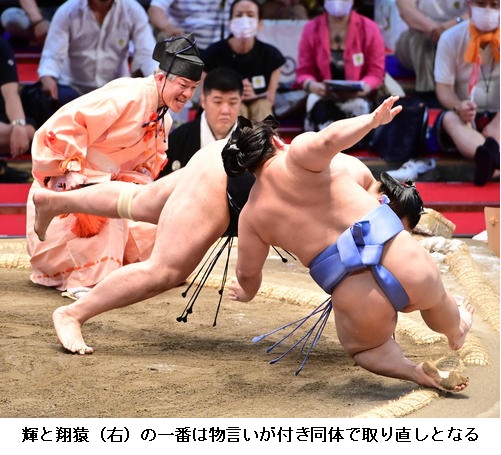「どきどきした」という翔猿の心臓の鼓動が早くなる中、今度は立ち合い成立。