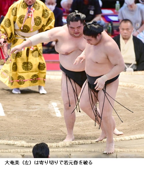 ▽十両の若元春に大奄美は、大奄美が寄り切りで勝ちました。