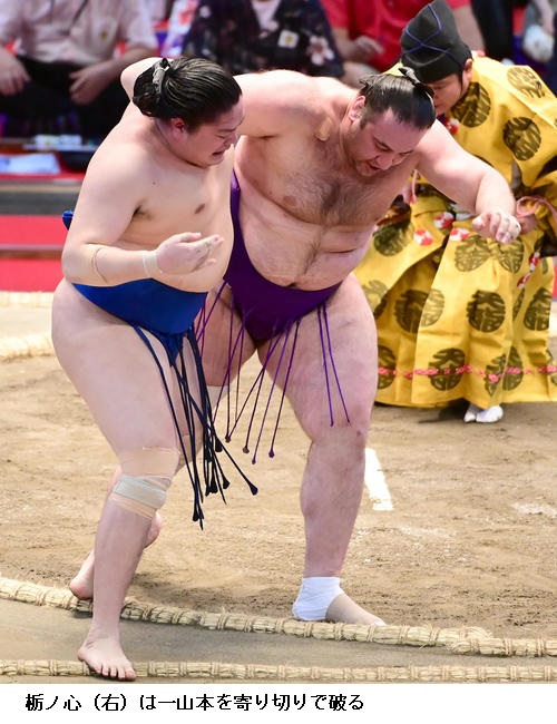 ▽新入幕・一山本に栃ノ心は栃ノ心が寄り切り。
