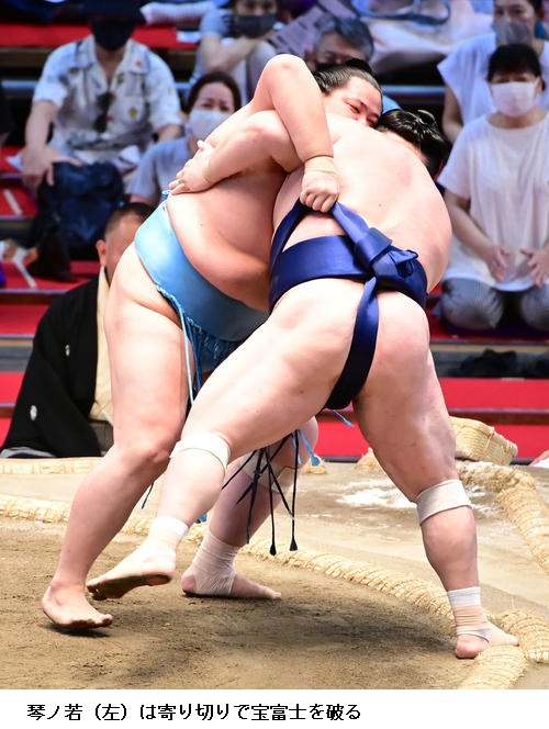 ▽琴ノ若に宝富士は琴ノ若が寄り切りで11勝目を挙げました。