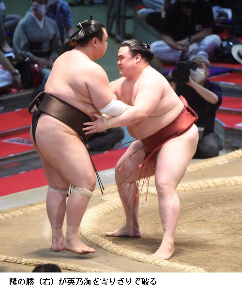 ▽英乃海に隆の勝は隆の勝が寄り切り。英乃海は負け越しです。