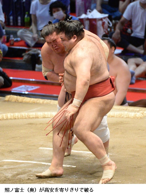 綱とりの照ノ富士は7連勝し「まわしを取れたのでじっくりいこうと思いました。相手を正面において前に出ようとしていただけで、特にいろいろと深い考えはなかったです。まだまだこれから、残り頑張りたいです」といつもどおり淡々と話していました。