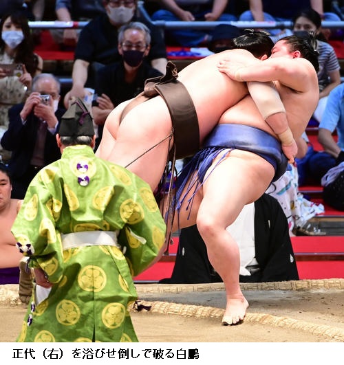 ▽大関 正代に横綱 白鵬は白鵬が浴びせ倒しで14連勝としました。
