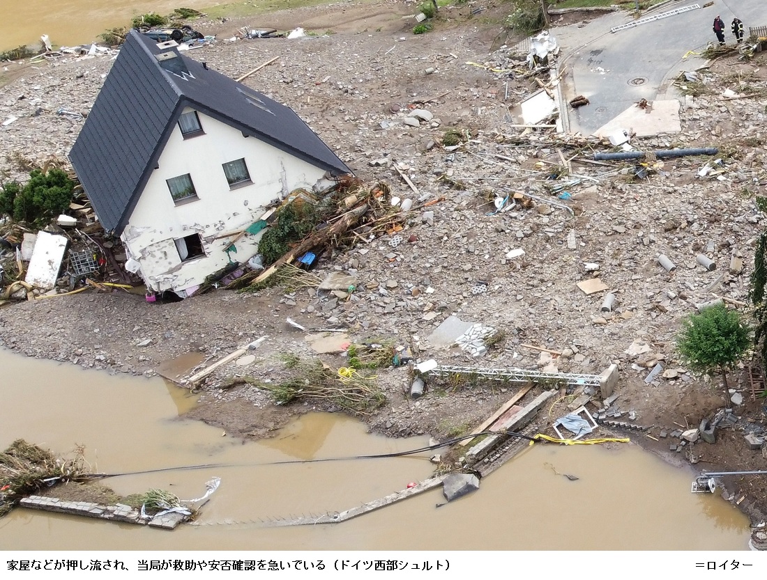 欧州で大規模な洪水の被害が発生するのは2000年以降で4度目だ。詳細の分析はこれからだが、地球温暖化などの気候変動が豪雨をもたらしやすくなるとの指摘がある。ドイツのゼーホーファー内相は「この惨事が気候変動に関係していることを疑うことはできない」との認識を示している。 (日本經濟新聞 2021年7月17日 18:15)
