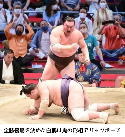 横綱白鵬(36=宮城野)が、なりふりかまわず7場所ぶり45度目の優勝を果たした。14勝同士で勝った方が優勝となる大関照ノ富士との結びの一番。立ち合いで左手を相手の顔にかざし、右肘で強烈なかち上げ。最後は小手投げで、照ノ富士を転がした。鬼の形相で、右腕で豪快にガッツポーズを見せた。土俵ではふさわしくないとされる喜び方で、復活を印象づけた。