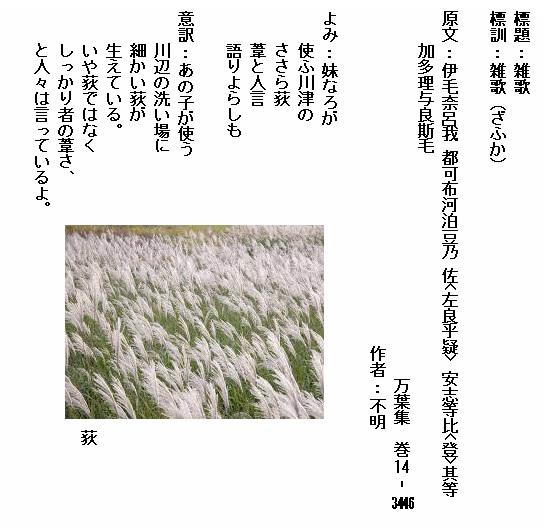 巻14-3446:妹なろが使ふ川津のささら荻葦と人言語りよらしも