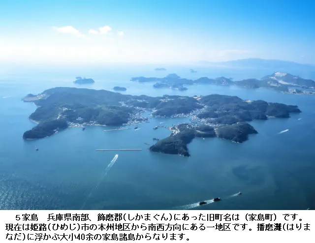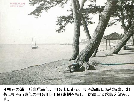 意訳:朝ともなると、あの子がいつも手に取る鏡、その鏡を見るという御津の浜辺で、大船の舷に櫂をいっぱい取り付け、遠い韓国に渡って行こうと、真向かいの敏馬を目指して、潮時を見計らい水路を乗って漕いで行くが、沖の方には白波が高く立っているので、浦伝いに漕ぎ進んで行くと、いとしい子に逢うという淡路の島は、夕方になって雲の彼方に隠れてしまった。やがて夜も深くなって行く先の目当てもつかないままに、我が心は明るいという名の明石の浦に船を停めて波の上に浮寝をしんがら、海の神の統べ給う沖の方を見やると、こんな夜更けに漁をするのか、海人娘子たちは、小舟に乗って点々と浮かんでいる。そのうちに明け方の潮が満ちてくると、葦の生えているあたりには鶴が鳴き渡って行く。この朝凪のうちに船出をしようと、船長も水手たちも掛け声を合わせて、かいつぶりのように波にもまれて行くと、心待ちにしていた家にちなみの家島は雲の彼方に見えて来た。この家恋しい心もなごみもしようかと、早く辿り着いて家島を見たいと思いながら大船をわれらが漕いで行くと、あいにく沖の波が高く立ってきて遮る。やむなく遠くから見るばかりで通り過ぎ、玉の浦に船を停めて、その浜辺から家島の浦や磯の方を見はるかしていると、家恋しさにまるで泣く子のようにおいおいと泣けてくる。せめて海の神様が腕飾りにするという玉、この浦にちなみのその得がたい玉を家づとにしてあの子に送ってやろうと、拾い取ってまずは袖に入れてはみたものの、都に帰してやる使いの者もないので、持っていても役には立たないと、また元どおりに放ったらかしてしまった。
