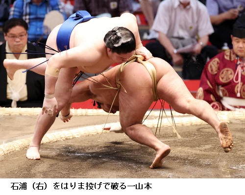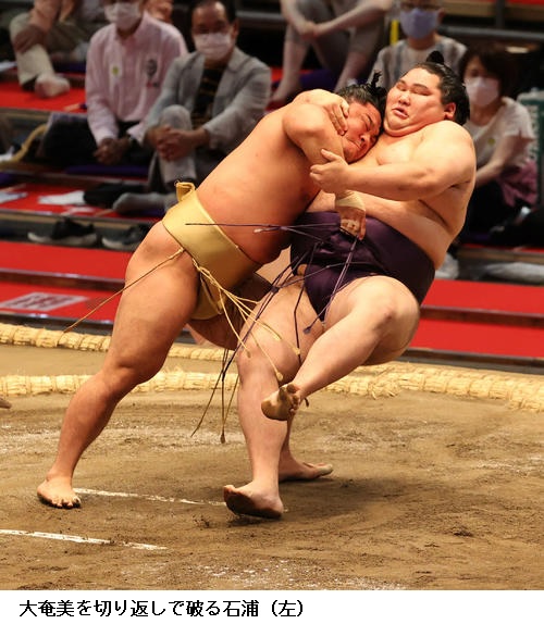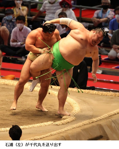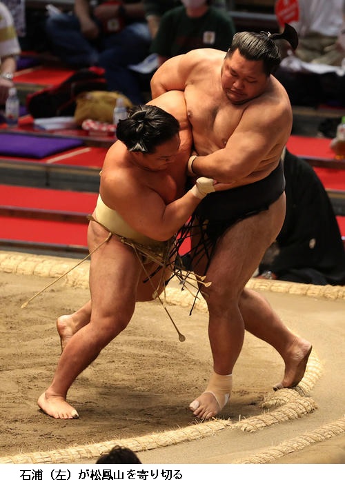 ▽石浦に十両の松鳳山は、石浦が寄り切り。