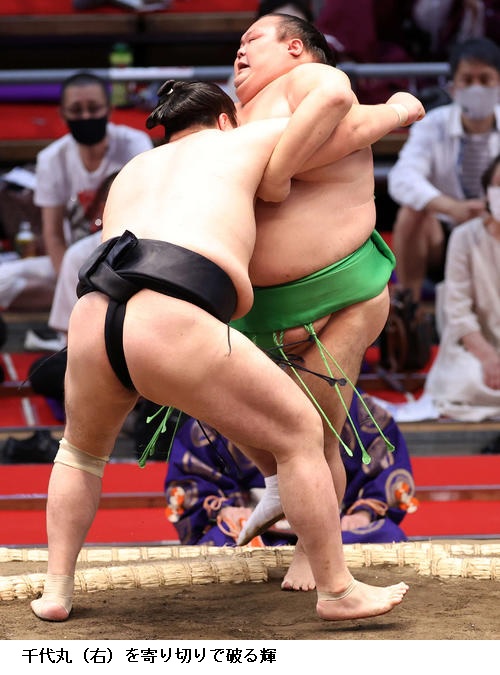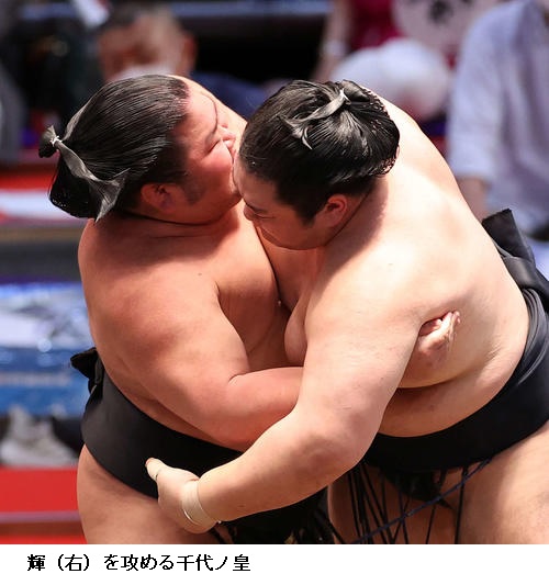 ☆千代ノ皇 今日は特に(輝が)同期生だったので、負けられないという気持ちだった。足を止めず攻め続けられた。