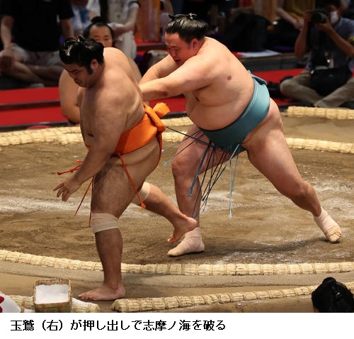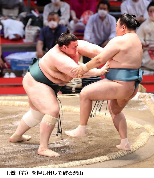 ▽玉鷲に碧山は碧山が押し出し。玉鷲は今場所初黒星です。