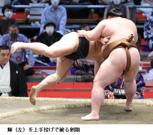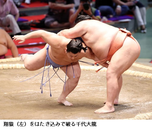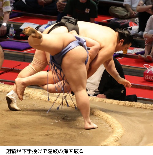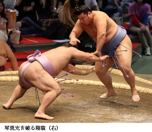 ☆翔猿「(不利な体勢から逆転の下手投げ)捨て身だったが、思い切りいったら白星につながった。」