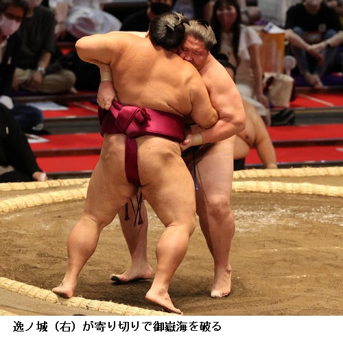 ▽逸ノ城に綱とりに挑む大関 照ノ富士は、照ノ富士が寄り切りで6連勝。