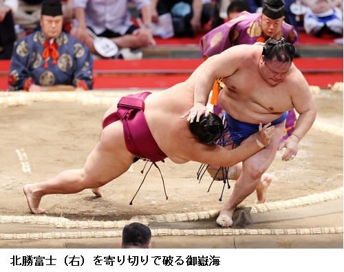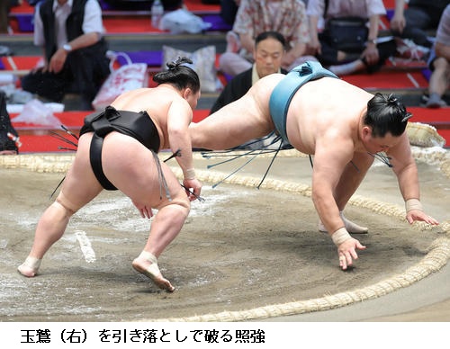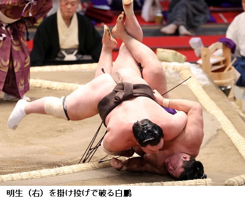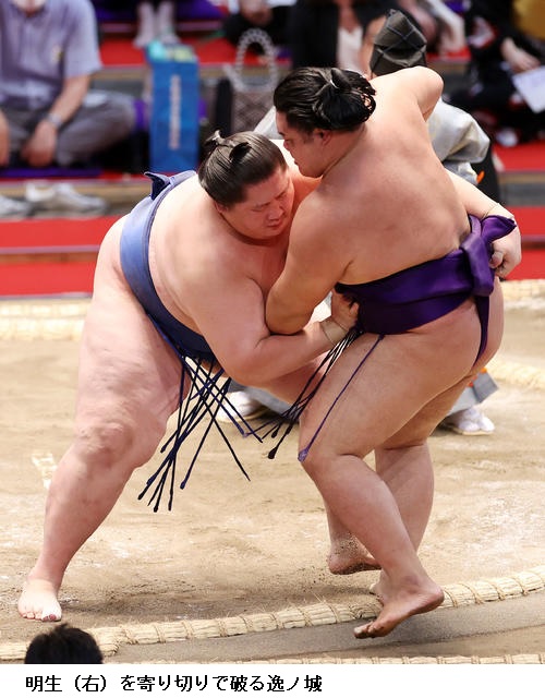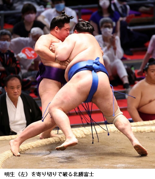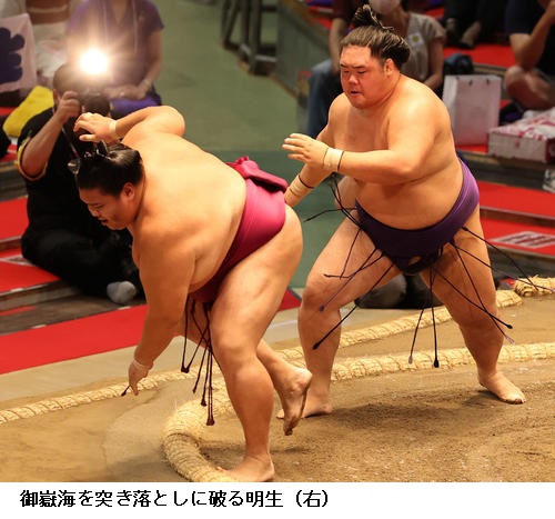 ▽関脇 御嶽海に新小結 明生は、明生が突き落とし。