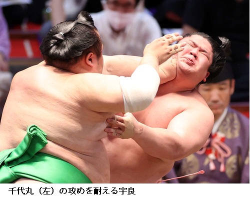 ★宇良 今日も全部相手が上でした。強かったです。(序盤5日間を終えて2勝3敗)精いっぱい頑張っているけど、通用しないですね。力出し切りたいですね。