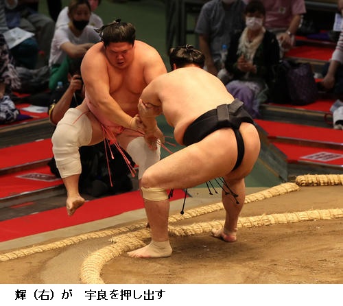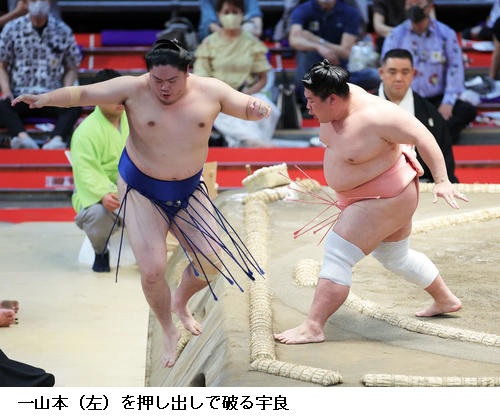 ▽宇良に新入幕の一山本は、宇良が押し出し。