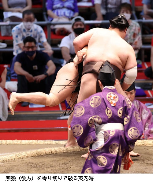 ▽英乃海に千代翔馬は英乃海が突き落とし。