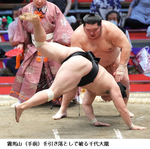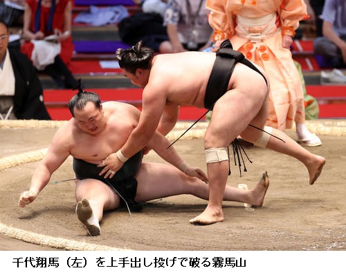 ▽千代大龍に霧馬山は、千代大龍が引き落とし。