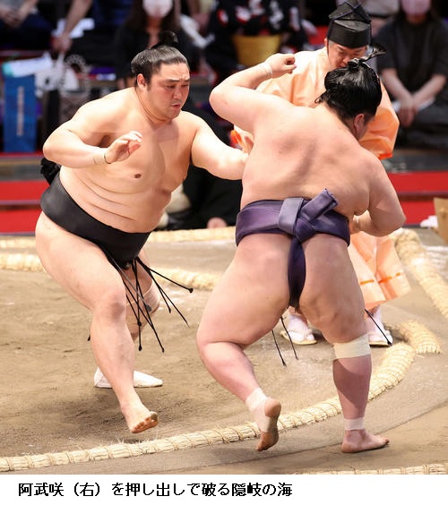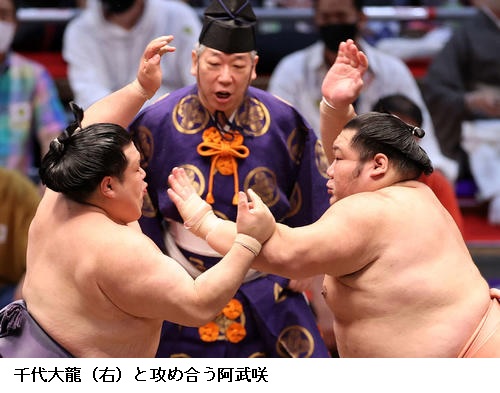 ▽阿武咲に千代大龍は阿武咲が寄り切り。