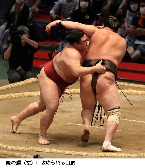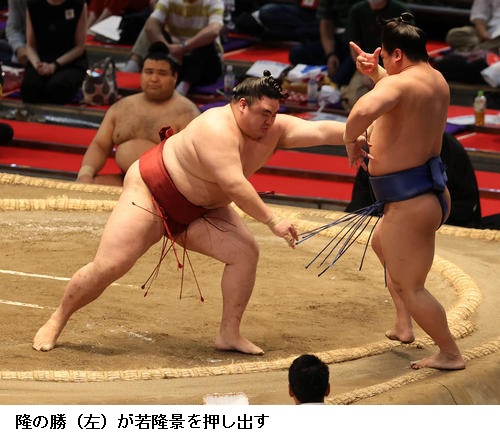 ▽隆の勝に新小結 若隆景は、隆の勝が押し出し。