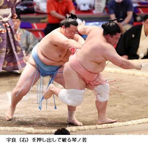 ▽宇良に琴ノ若は琴ノ若が押し出し。