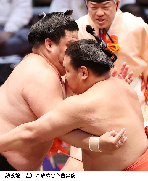 ▽妙義龍に豊昇龍は豊昇龍が寄り切り。