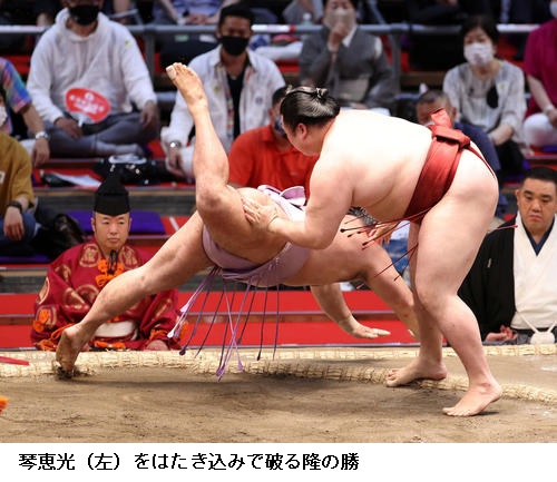 ▽隆の勝に琴恵光は隆の勝がはたき込みで初白星。