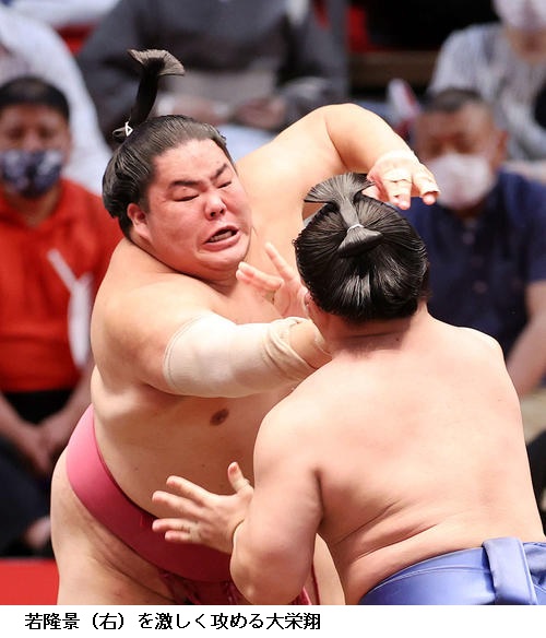 ▽新小結 若隆景に大栄翔は、大栄翔が突き出しで初白星を挙げました。