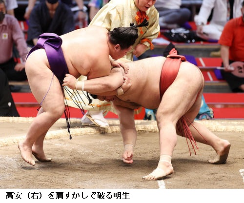 ▽高安に新小結 明生は明生が肩すかしで勝ちました。