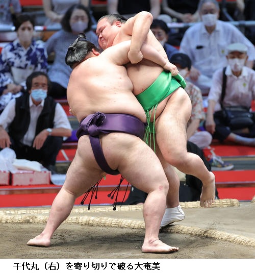▽大奄美に千代丸は、大奄美が寄り切りで勝ちました。