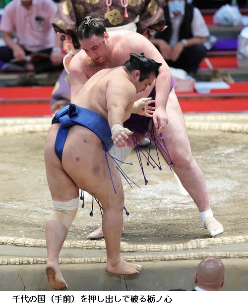 ▽千代の国に栃ノ心は、栃ノ心が押し出し。