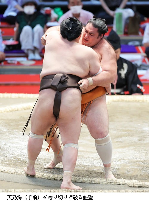 ▽魁聖に英乃海は、魁聖が寄り切り。