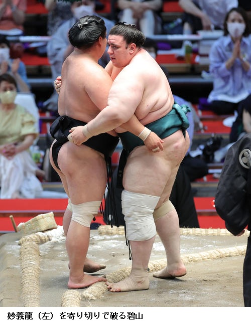 ☆碧山 落ち着いて、やっと自分の相撲をとることができました。昨日負けて、相当悔しくて。負けてもいいから前に出ようと、それがよかったと思います。