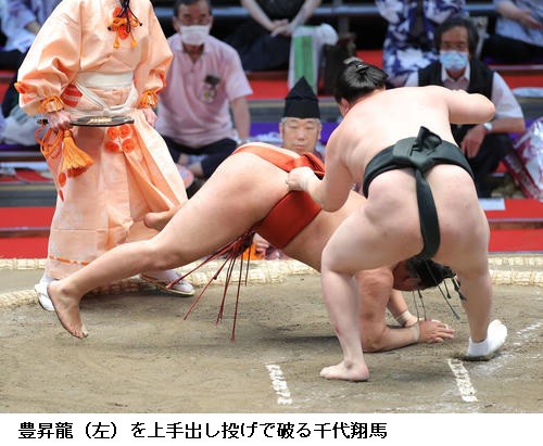▽豊昇龍に千代翔馬は、千代翔馬が上手出し投げ。