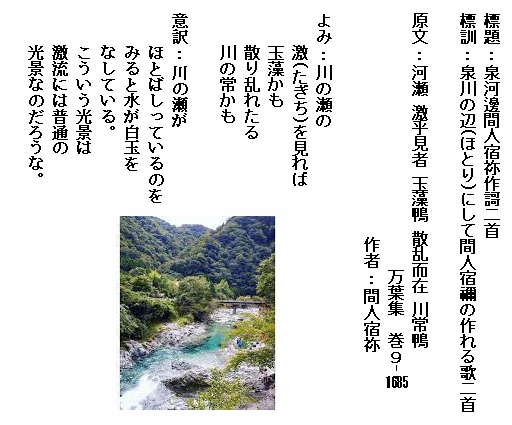 巻9-1685:川の瀬のたぎつを見れば玉藻かも散り乱れたる川の常かも